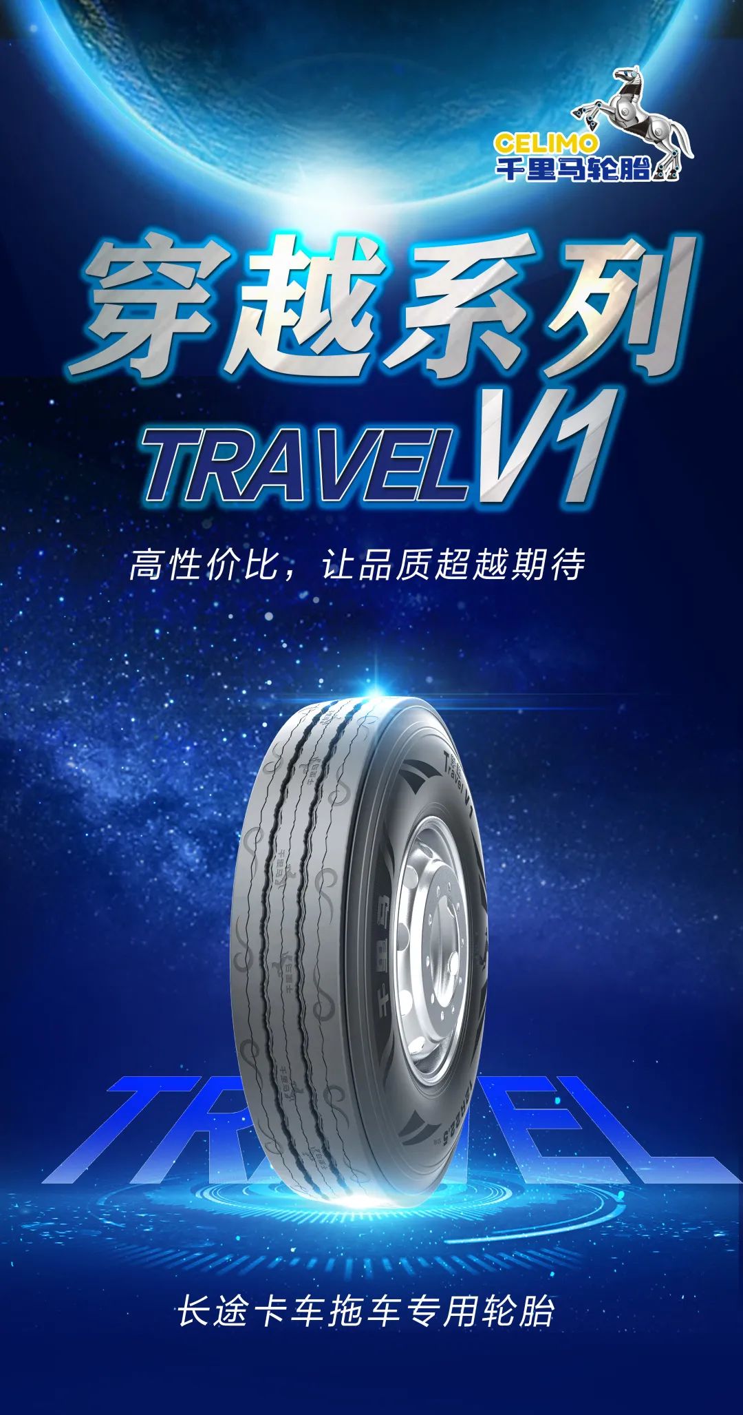 性能強悍的同時,穿越V1在外觀設計上也是獨具匠心。胎側曲線組成勝利“V”托舉著“千里馬”,象征王者歸來,“火箭”的頂端屹立著“千里馬”,寓意夢想穿越。同時,胎面設計中不僅有千里馬品牌標志,還融入中國傳統“祥云”元素,意為馬踏祥云,向司機用戶傳達吉祥如意、蒸蒸日上的美好祝愿。無論是性能,還是顏值,穿越V1 都十分給力。