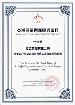 紅豆集團項目獲亞洲質(zhì)量創(chuàng)新優(yōu)秀項目一等獎